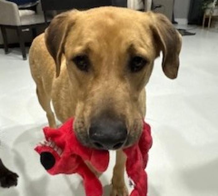 Hello, my name is Fisher and I am a 2.5-year-old, 69 lb. Lab mix who is